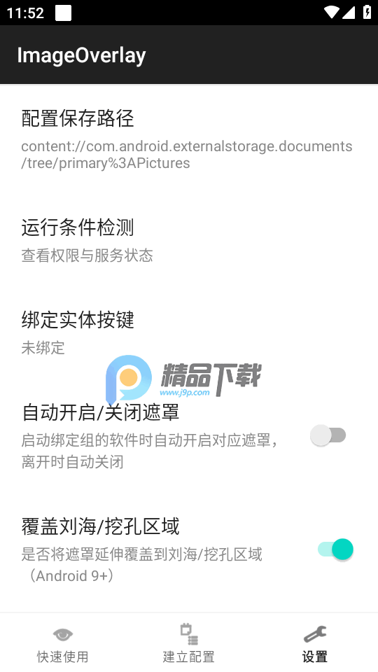 默认配置与磁贴:支持设为默认配置,并通过快捷设置磁贴(Quick Settings Tile)一键启停默认遮罩。