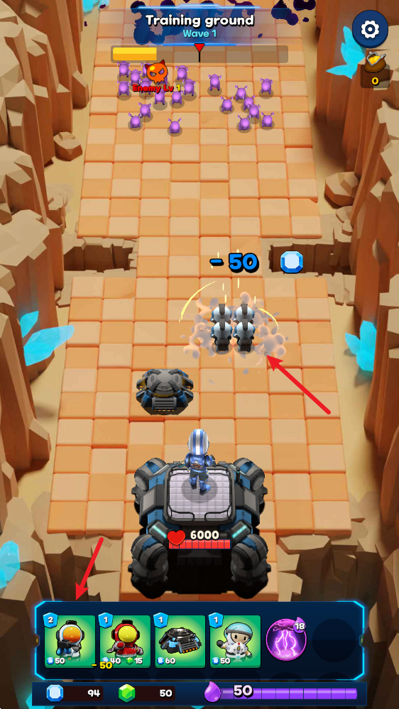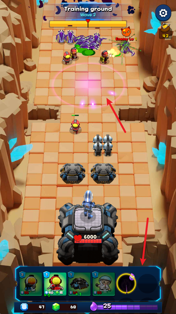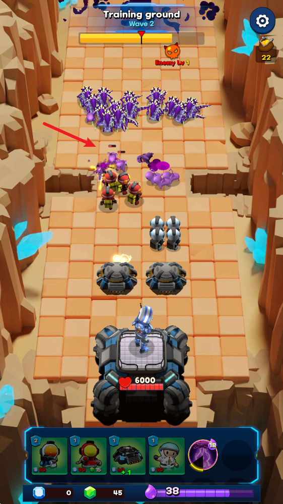 2、开始关卡后,我们拖动下方的士兵即可加入到阵地中。