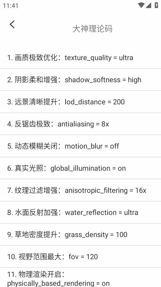 1.画质极致优化:texture_quality =ultra