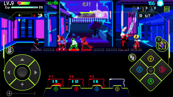 5、正式开始后左边控制角色的移动、换边和恢复能量,右边的ABXY分别对应使用不同的卡牌技能。