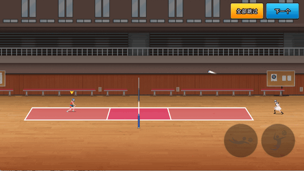1、打开游戏右下角第一个低发球、第二个跳跃发球
