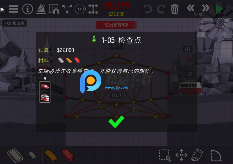 16、成功过关!预算没有超支,点击绿色对勾,正式开始下一关!