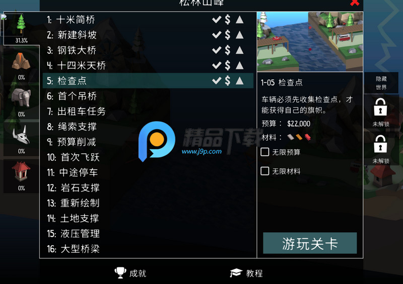 桥梁建造游戏是一款充满挑战与乐趣的益智类建造物理游戏,为玩家提供了更长的游戏时间和丰富的解谜体验。游戏由Adrian Talens创作的原声带,包含13首新曲目和18首重制的经典曲目,让玩家在轻松愉快的音乐氛围中享受游戏。喜欢的不要错过,解锁MOD玩法。