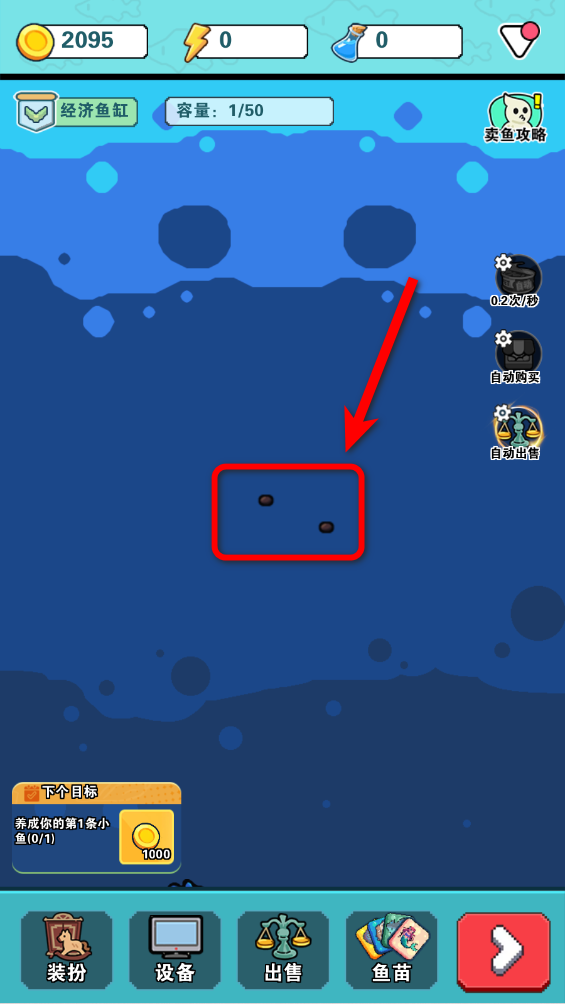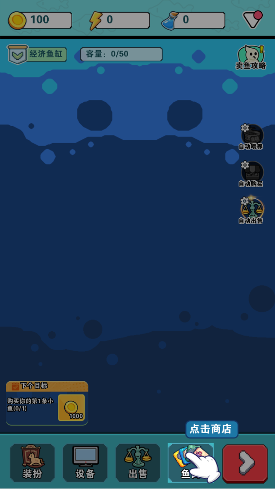 有些忘了作品当中是不是有引导内容了,但如果有的话一直是最基础的引导告诉玩家如何投喂以及如何购买鱼苗,后面更深层次的,比如说鱼缸的血量代表着什么,如果能够进行自身资金的积累以及鱼类进行变异之后能够得到什么动作内容都需要玩家自己探索才能够了解,它是一种表面上来看没有什么门槛,但实际上就是在玩家体验的过程当中不断对玩家进行劝退的一种游玩套路,当然部分劝退也来源于作品当中占比较高的广告。