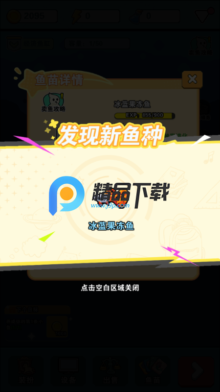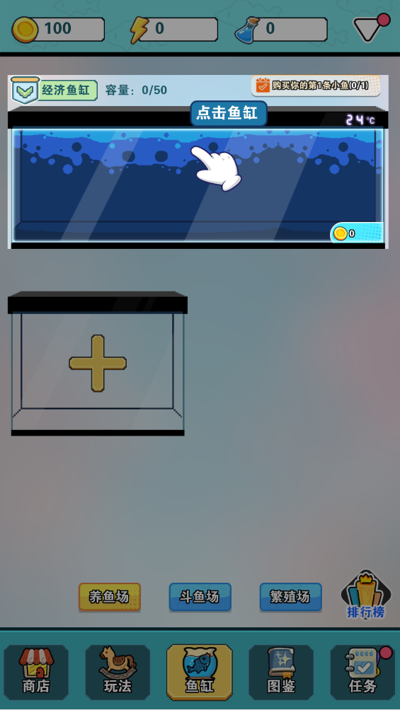 在实际体验上感觉就是一款平平无奇的点击模拟器,毕竟在设定当中,玩家想要娱乐尽可能的快速成长所能够进行的唯一方式也就是不断的喂养饲料,而作为基础的喂养方式就是需要玩家不断的点击进行饲料的投喂,从玩法上来讲就是一款平平无奇的点击模拟器。作品当中还存在着一个玩家投喂私聊之后鱼群就会闻上来的设定,这一设定也就避免了玩家使用连点器,毕竟点击到鱼类是会打开详情页面的。玩法就是如此,所有的内容都指向了点击饲养,后续的无论是出售还是更多鱼缸的开拓也只是辅助内容而已,能感受到点击才是作品的重中所在,毕竟只有生长速率提升上去才能够最大可能的见识到变异的鱼类。