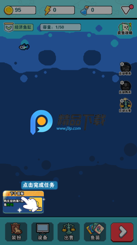 质量很低下的一款作品,与其说是休闲养鱼,倒不如说是一款广告模拟器,想要进行后续内容都需要观看广告,而除了广告之外就是无尽的点击内容。除此之外,由于作品将重心放在了鱼类的变异升级的缘故,在实际的经营上倒是没有看见太多的玩法,也并不能由此为玩家提供一定的动力,可以说是塑造的很失败了。