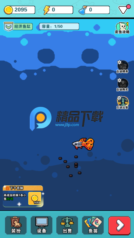 从表面上来看似乎是一个模拟经营作品,但实际上但实际上从体验上来看,作品的重点似乎并不在经营上,而是放在了鱼群的养殖上。所有的娱乐都需要从最开始的鱼苗进行养殖,后续在养殖的过程当中可能会发生某种进化,改变自身的品阶或是产生变异效果,而出售似乎只是为了让玩家有足够的货币去进行这种尝试,玩的时候就未免感觉自己没有什么重点,有些本末倒置的意味。