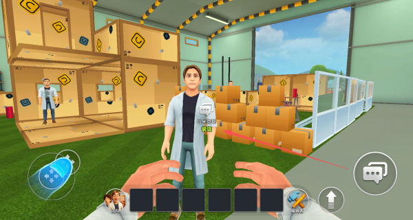 1、通过左侧虚拟摇杆控制角色在实验室中移动,与场景内的教授们展开对话获取任务。