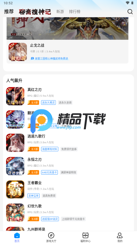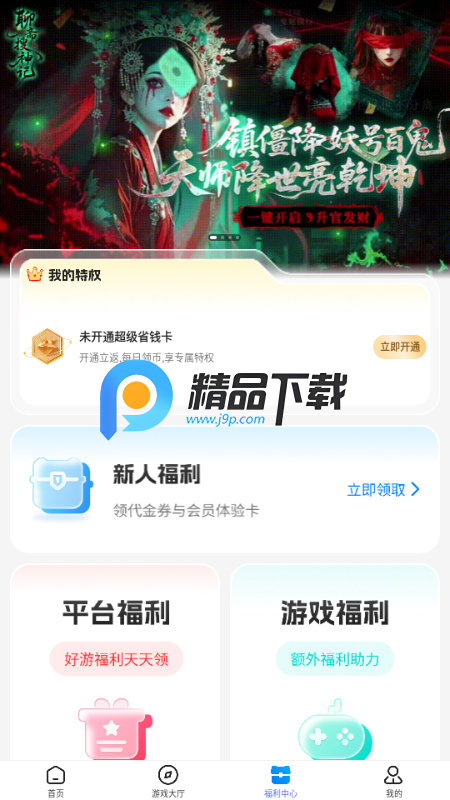 5、点击下方的福利中心,就可以看到各种新人福利、游戏福利等等板块内容。