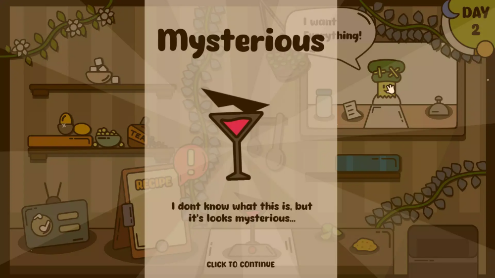 4、当完成所有的订单后就会结束一天,此时玩家可以消耗金币来解锁更多的配料去制作饮品。