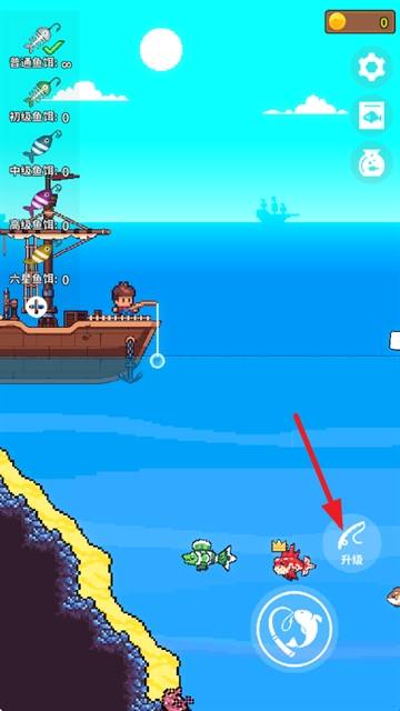 3、点击右下角的升级按钮可以对鱼竿进行升级;