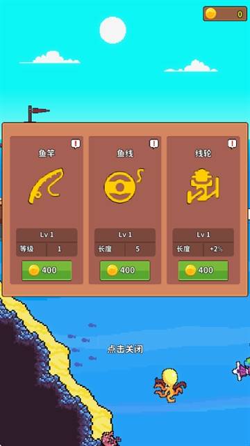 2、装备升级系统:玩家可以使用赚到的金钱对鱼竿、鱼钩、鱼线等装备进行升级,提升各项属性。随着装备等级的提高,能够钓到的鱼的种类也会越来越多,包括一些稀有鱼种。这增加了游戏的策略性和成长感。