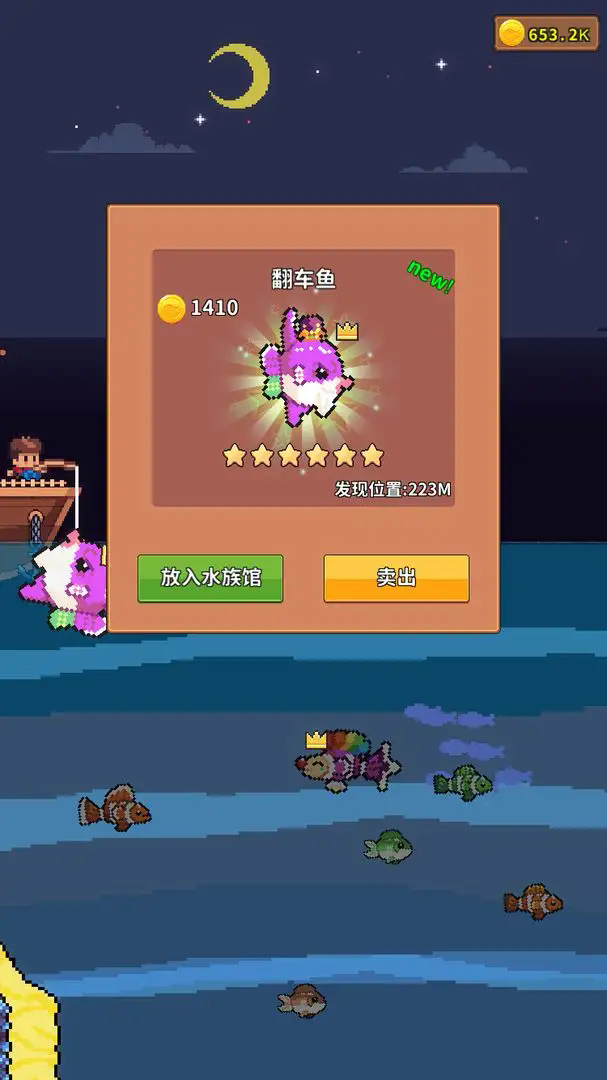 2、钓到的鱼可以放入水族馆或者卖出换金币;