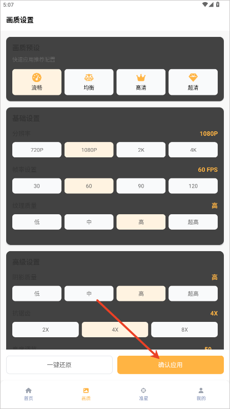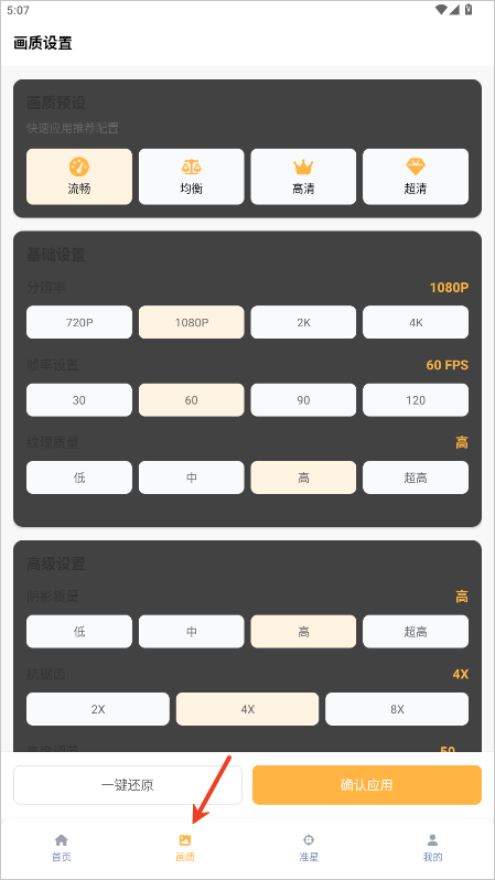 1、进入准星怪兽软件后可以看见准星调整和画质调整两大栏