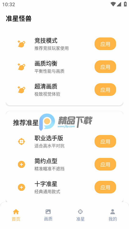 很干净清爽好用的一款手机实用画质准星助手软件,准星怪兽官方正版手机版,打开软件可以快速进行调整游戏中的画质和设置准星,内置了模板可以直接套用,操作很方便,可以快速适用到手机上,喜欢玩fps游戏的朋友必备。