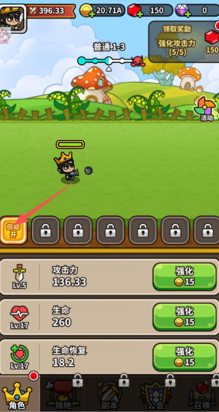 2、可以开启自动战斗,遇到敌人主动攻击解放双手。