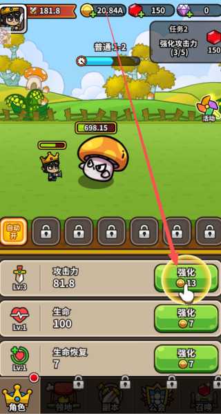 1、进入战场之后,可以使用金币来强化你的生命和攻击力。