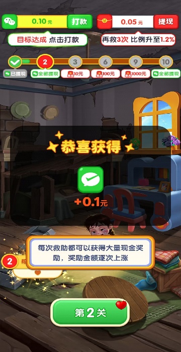 红包激励:完成关卡后可领取红包奖励,且难度越高、完成的关卡数量越多,获得的红包金额越大,增强了游戏的吸引力和持续动力。