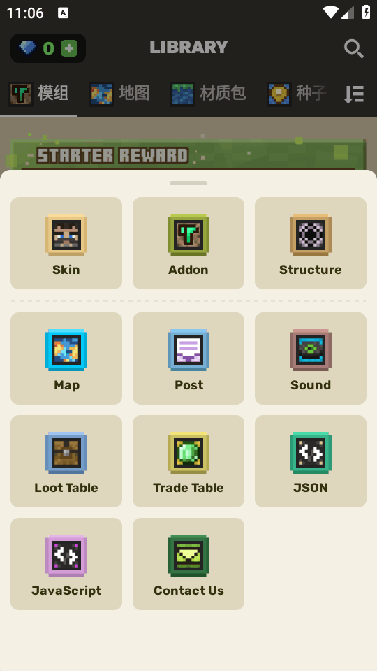 2、进入首页后,可以看到模组,地图,材质包,种子等文件。