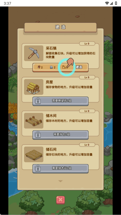 1、资源收集与建设:玩家点击采集资源,用于建造房屋、瞭望塔等各类建筑,每种建筑都有独特功能和作用,可根据自己的喜好和需求自由建造和管理家园,提升家园的繁荣度。
