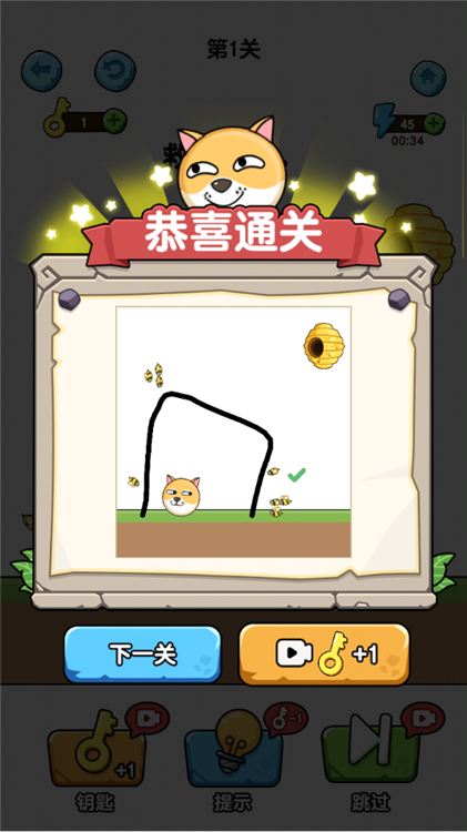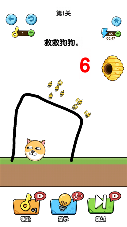 1、核心操作:玩家需要通过在屏幕上画线的方式来阻挡蜜蜂,保护狗狗不被叮咬。这种创新的画线玩法考验玩家的逻辑思维和创造力,你可以根据自己的想象画出各种形状的障碍物来完成关卡目标。
