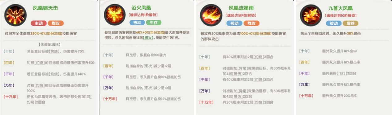马红俊的武魂是邪火凤凰,在游戏里是强攻系的范围输出好手。他的技能能对前方单体或人数最多的一列造成法术伤害,并附加【灼烧】效果。