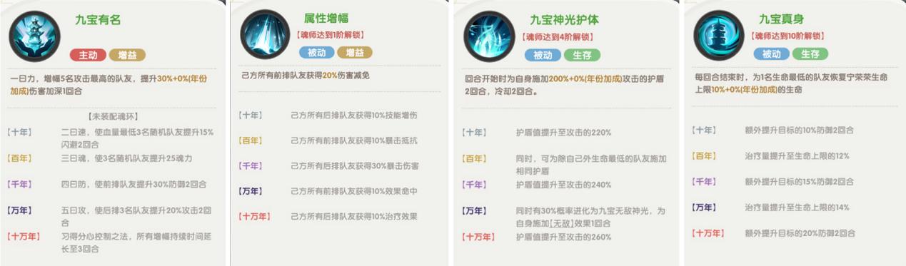 宁荣荣作为七宝琉璃宗的大小姐,武魂九宝琉璃塔让她成为游戏中顶尖的辅助系魂师。她的技能可提升友方魂师攻击力和免伤,进入【增幅】状态后,还能提供多种增益效果 。