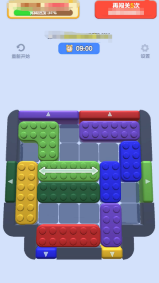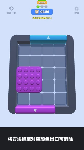 2、将方块拖至对应颜色出口可消除,完成任务即可过关。