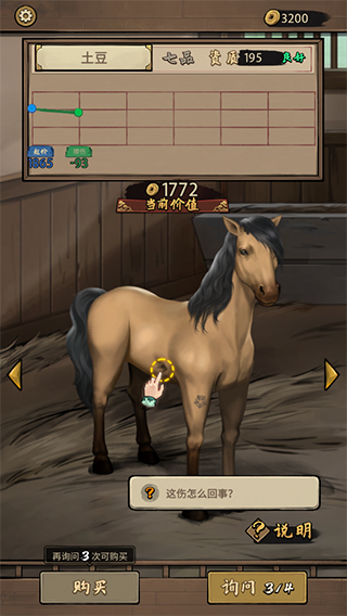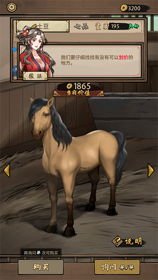 购买马匹前,先利用“污点降价”功能,最多可降价4次,降低购买成本。
