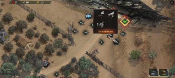 2、根据前几波敌人的类型建造基础塔,例如机枪塔应对小型部队、火焰塔对付群体敌人。