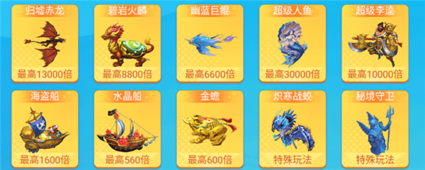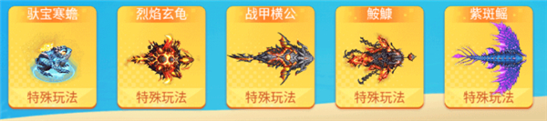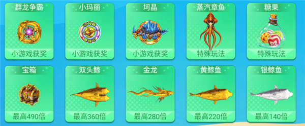 特殊鱼:拥有特殊玩法的鱼种,击杀后根据特殊玩法奖励金币。