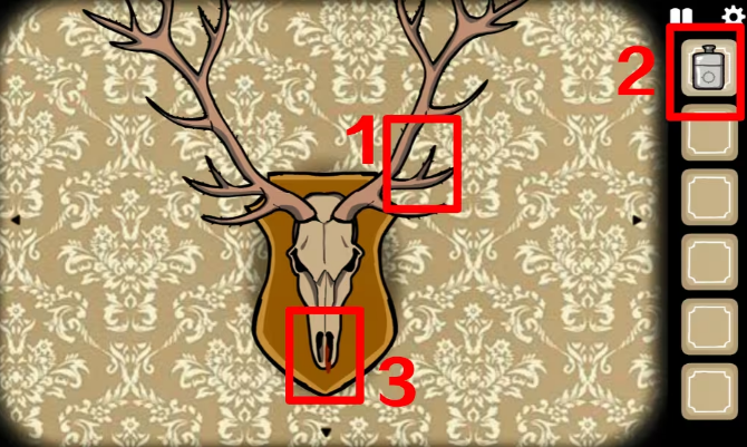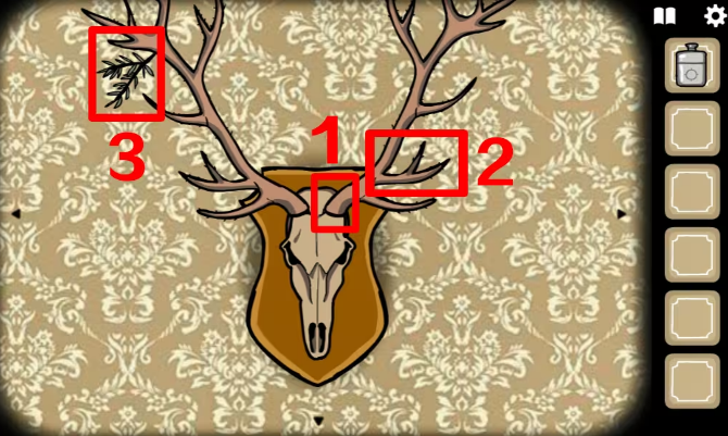4、点击鹿先生身后那面墙上的鹿头装饰,不停点右边的角,让它长出来,左边绿色枝丫获得迷迭香蘑菇煎鹿排中的配料之一迷迭香,解锁成就Rosemary。