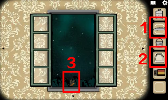 10、打开右边的窗户,先用刀戳蝴蝶拿成就Albert,再用玻璃罐罩住它。