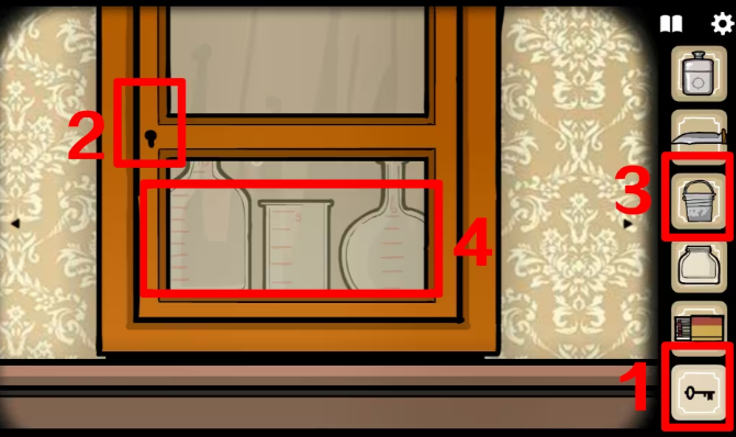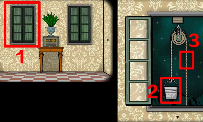 9、打开左边窗户,挂上空桶,拉右边的绳子两次获得一桶水。