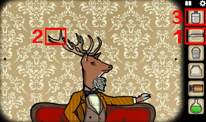 2、丰富剧情与谜题:剧情充满悬疑和惊悚元素,如鹿先生被毒死、兔子先生被捅死等离奇事件。游戏共有6个房间,每个房间都充满了独特的解谜任务,谜题设计巧妙且荒诞,难度较高,需要玩家细心寻找线索,并运用道具来完成任务。
