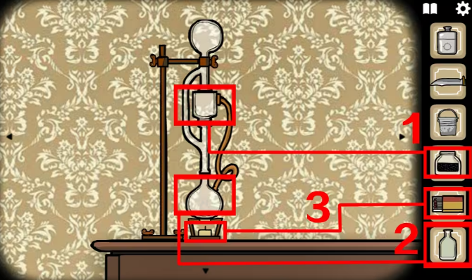 16、按下图提示,分别将毒种子,8ML的水装进容器,最后点燃蜡烛,获得一瓶毒药。