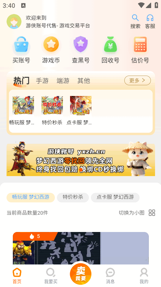 专注游戏账号交易买卖的平台,游侠账号app官方正版客户端,游侠代售官方平台手机客户端,以前专注梦幻很专业的一个平台,领先全行业的一个游戏交流平台,后期将添加更多的游戏,有兴趣了解游戏交易的玩家可以看看。