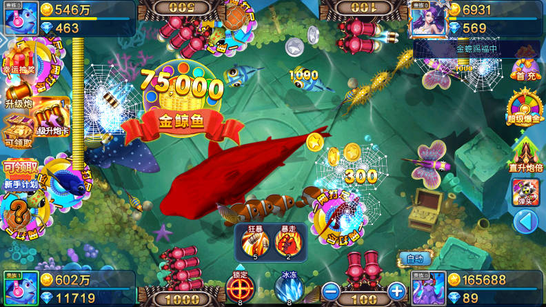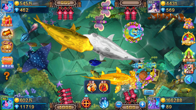 策略选择:玩家需要运用策略选择不同的炮台对鱼类发动攻击。