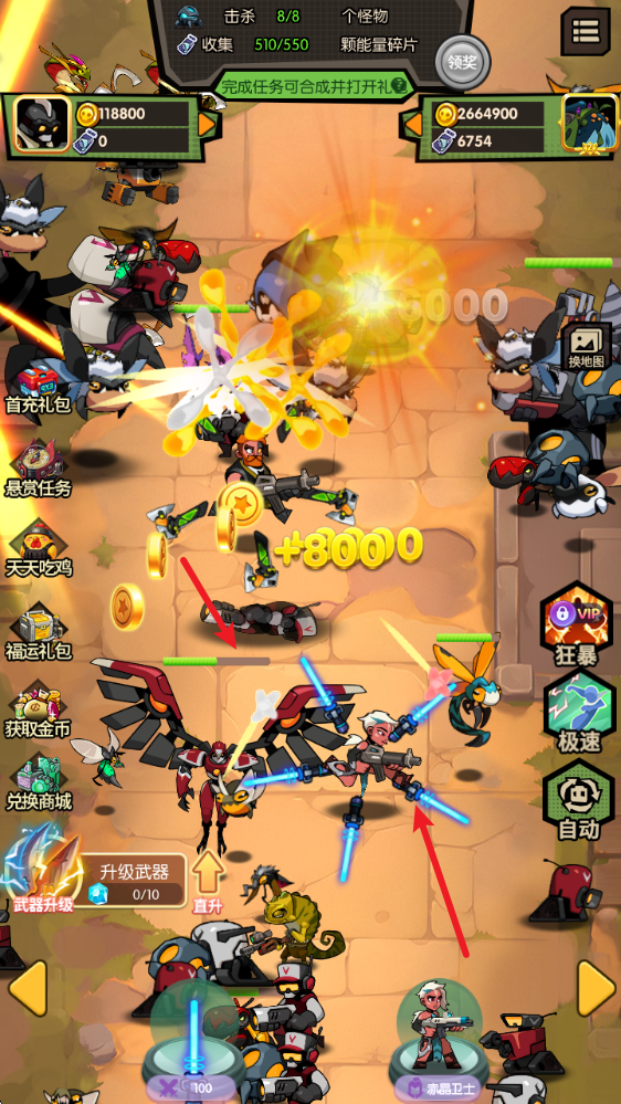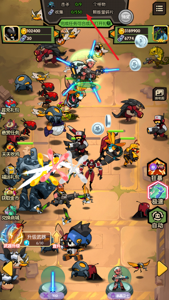 3、每次消灭敌人都能够积累到分数,上方有着对应的任务可以完成。