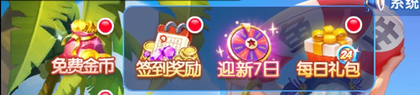 1、主页面左边【免费金币】里有三个获取渠道,每天签到可以可以获得少量的金币,连续签到2天和4天一共可以获得40万金币。