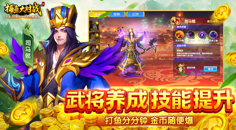 无双捕鱼Online又称三国无双捕鱼,是一款融合了三国题材的3D捕鱼游戏,以其精美的建模和炫酷的武将BOSS吸引了众多玩家。游戏不仅提供了高爆率的捕鱼体验,还通过乱世开启、经典战役回顾等玩法,让玩家重温三国历史。