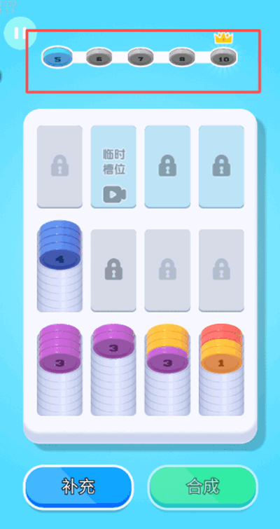 4、留意界面上方的等级进度条,通过不断合成升级牌来推进进度,解锁更高等级目标以获取更多奖励。