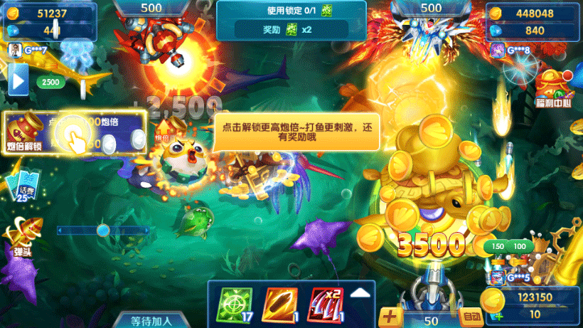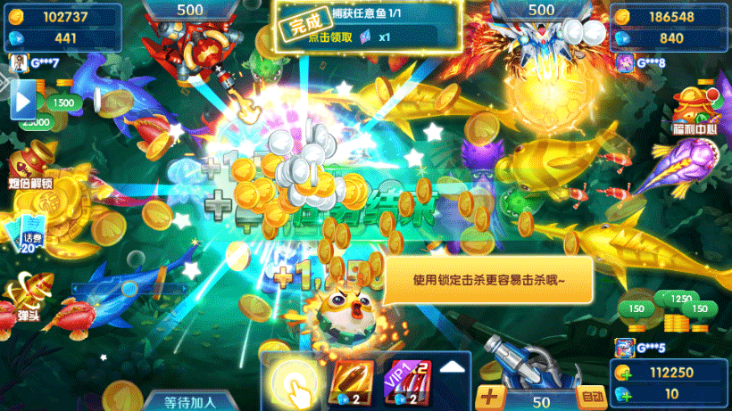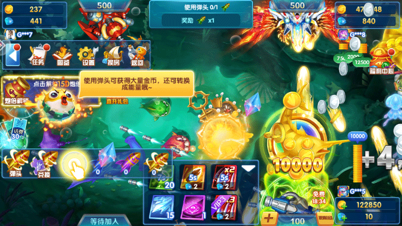 4、游戏采用点击式操作,玩家需通过点击来进行捕鱼;