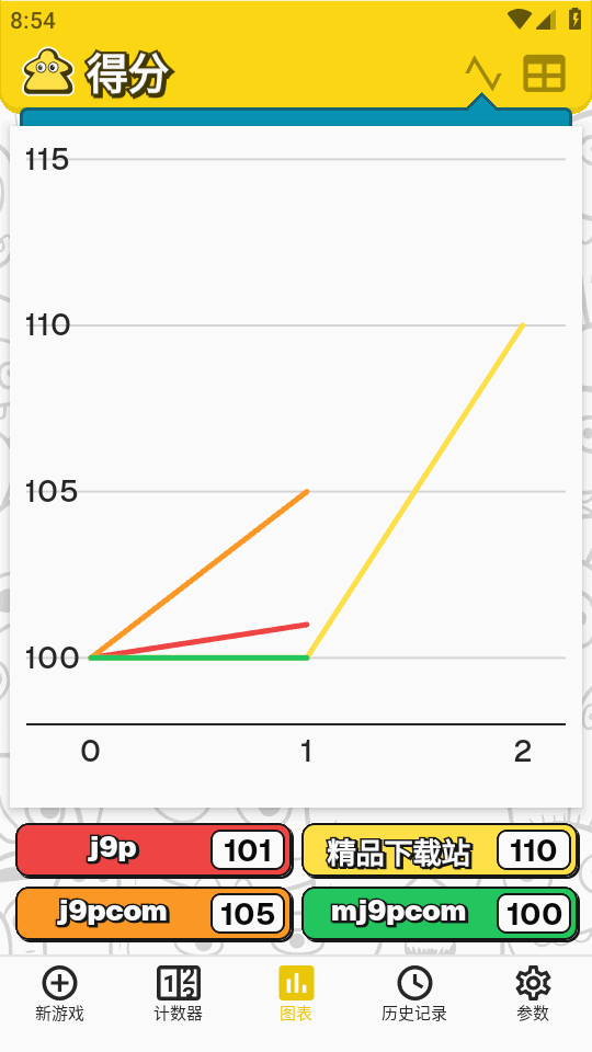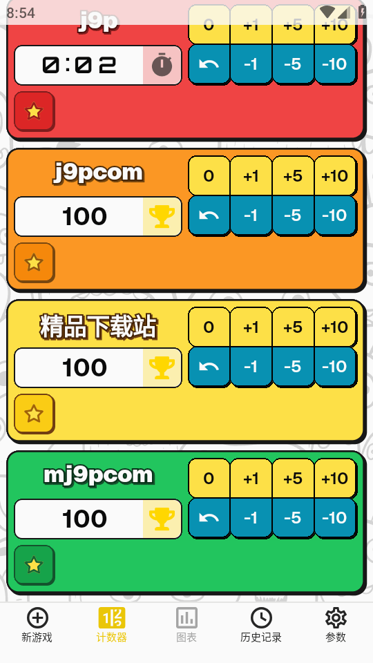 很专业好用的一款游戏管理记分工具,MyScoreTracker手机免费版不需要登录,不用注册下载安装好即可免费使用,支持最多12名玩家同时计分,可随意更改分值,支持便捷的记录,可以快速生成图表分析,能将所有记录保存在历史记录中,可根据自己的喜好进行设置。