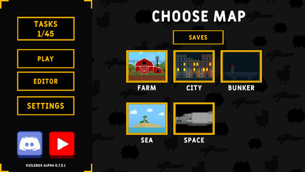 2、这里以沙盒模式为例,选择游戏地图,现有农场、城市、碉堡、海洋等地图;