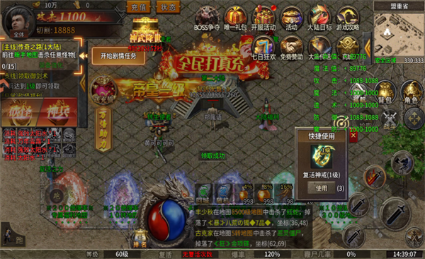 3、开局可以先在福利界面领取免费的真充卡解锁vip等级,使用真充卡是可以完成充值任务的,真充卡也可以通过活动和BOSS获取。