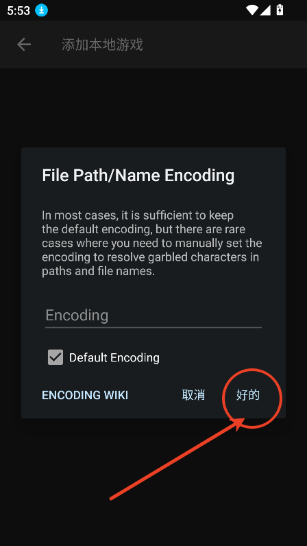 6、选择之后会回到刚刚添加游戏的时候的界面,然后点击语言那一栏最右边的查找标志的图标。之后会弹出选择语言的弹窗,如图所示,先点击左边的框框选中,然后点击右下角的“好的”确认就行了