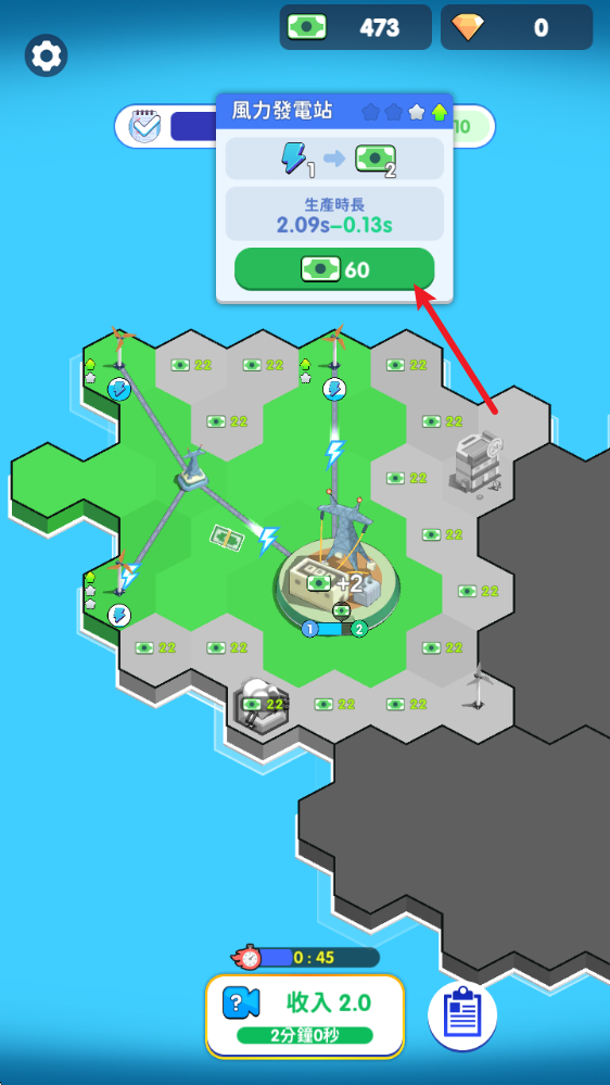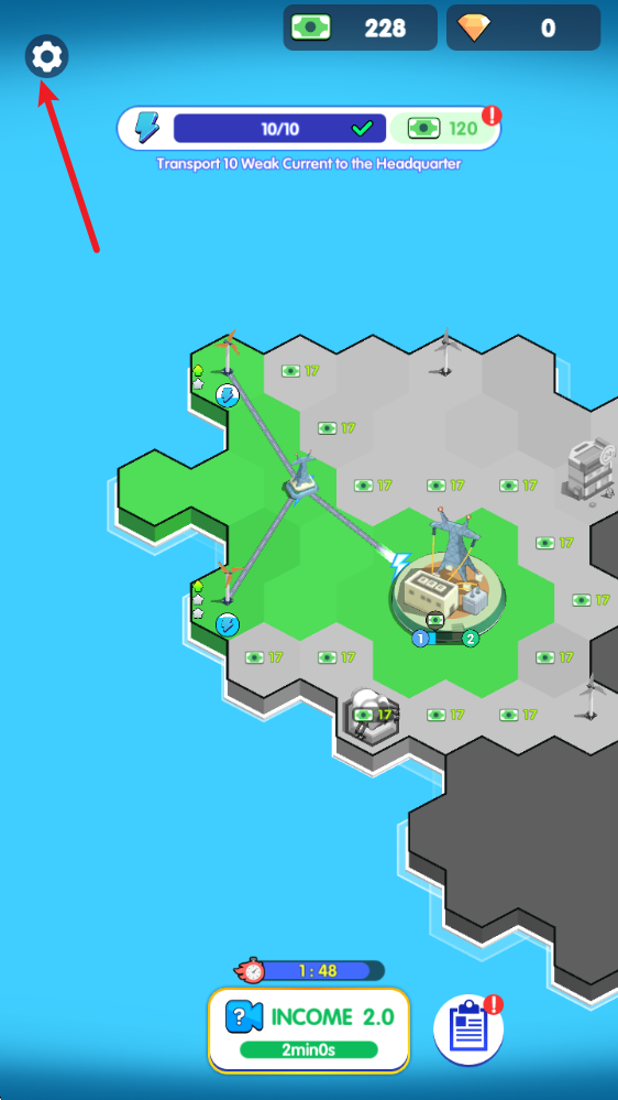 2、当我们建设好发电站后,连接发电站和总部,就可以通过发电来获取钞票了。