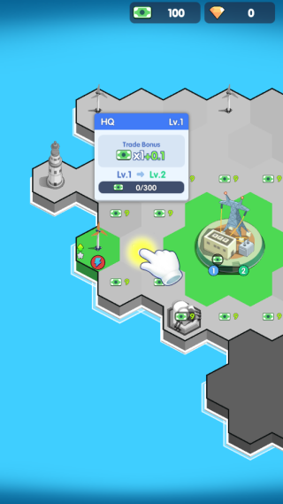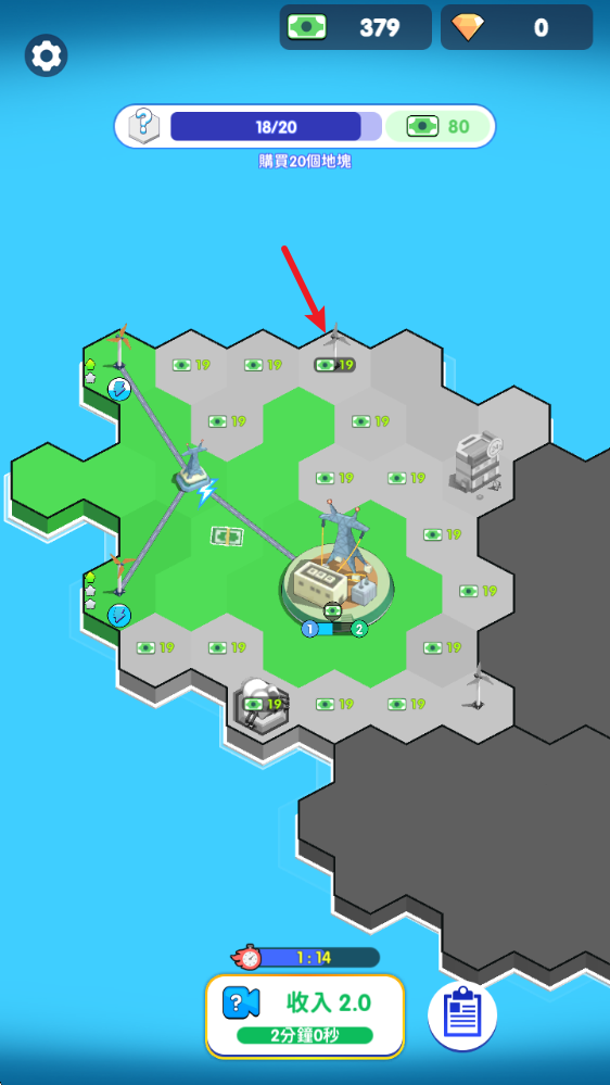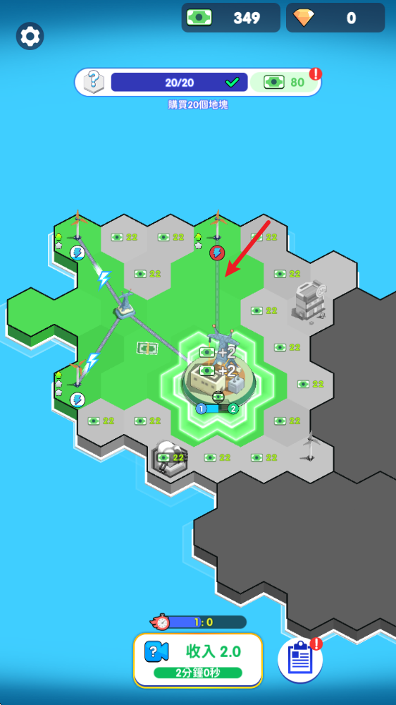 1、游戏中点击土地即可花费对应的钞票进行建设。