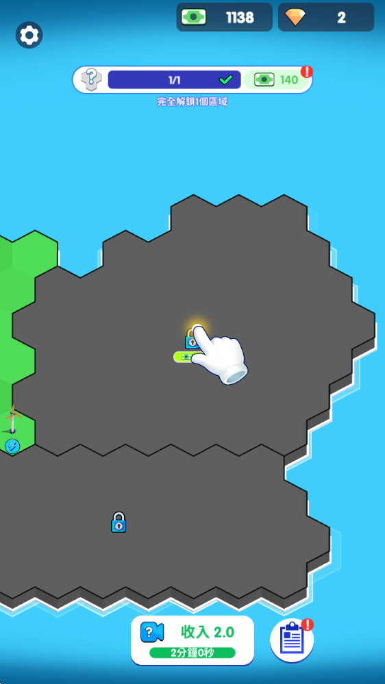 6、顺利解锁一片区域的所有土地后,我们就能解锁新的区域了。
